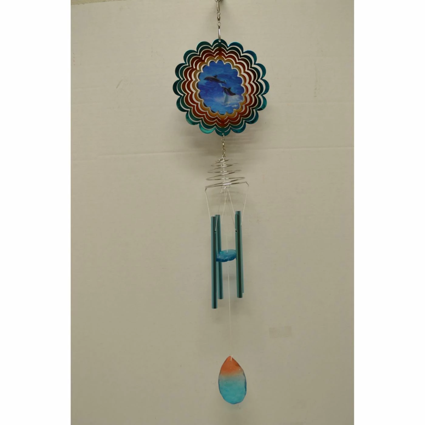 Give your outdoor space a bit of coastal flair with the Great World Dolphin Wind Chime with Spinner. This colorful wind chime features a variety of moving parts, giving it a constant sense of movement and a lovely ambiance. The vibrant colors enhance the eye-catching look.