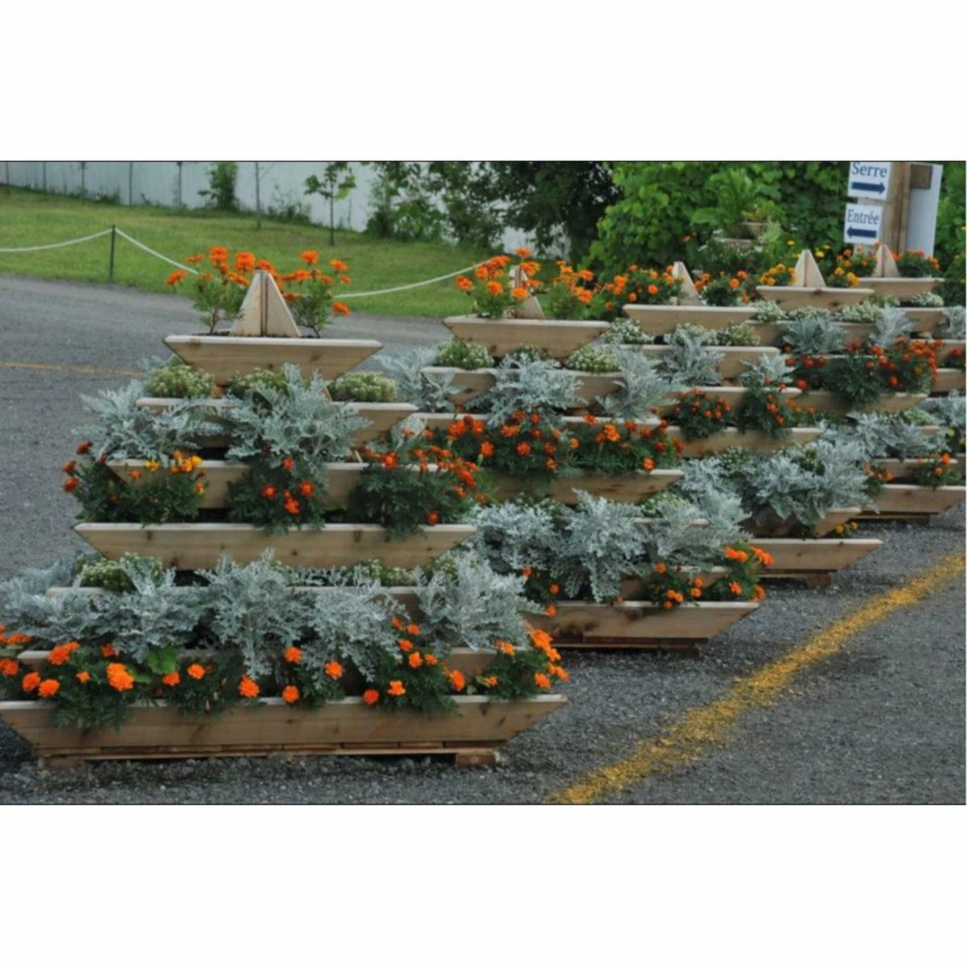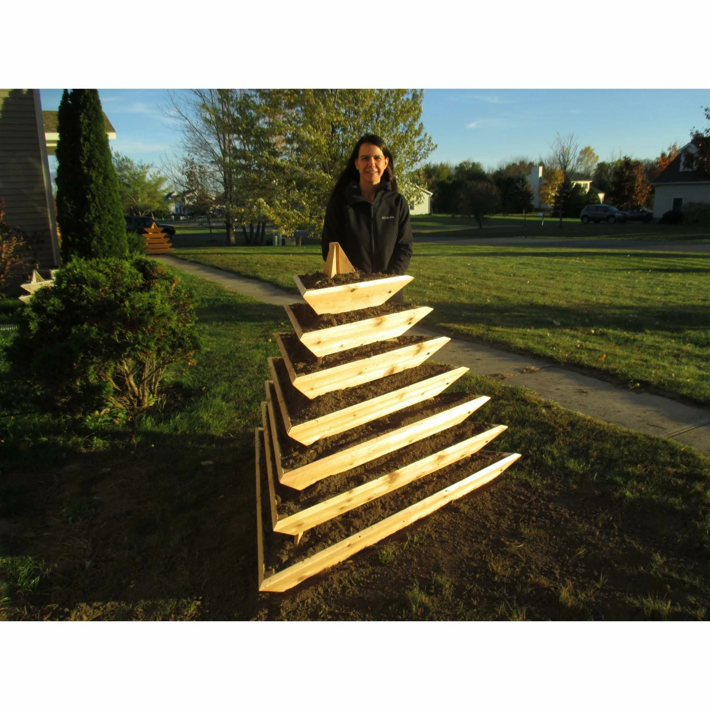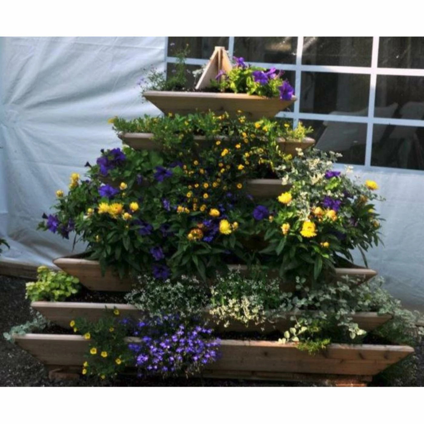 A new concept in gardening, the Infinite Cedar Plant Pyramid 7 Level Cedar Planter lets you grow an entire garden in a small space. Able to hold up to 143 gallons of soil and 76 plants, the Plant Pyramid is constructed of rot-resistant cedar and is left in its natural finish so you can paint or stain to your liking. This unique design allows you to grow approximately 8 times more plants per square foot than a conventional garden. Its compact design and upright construction minimizes the amount of space necessary to grow any type of plants. Use this versatile planter for vegetables, herbs, flowers or any combination of the three. Its patented design allows the plants’ root system to benefit from the volume of available soil to achieve their full growth potential. Raising the garden off the ground makes it easier to take care of the plants and reduces overall time spent maintaining your garden. It’s virtually maintenance-free and can be assembled in about 20 minutes. Ground Space: 10.76 sq. ft. Matches a vegetable garden of 66.52 sq ft.