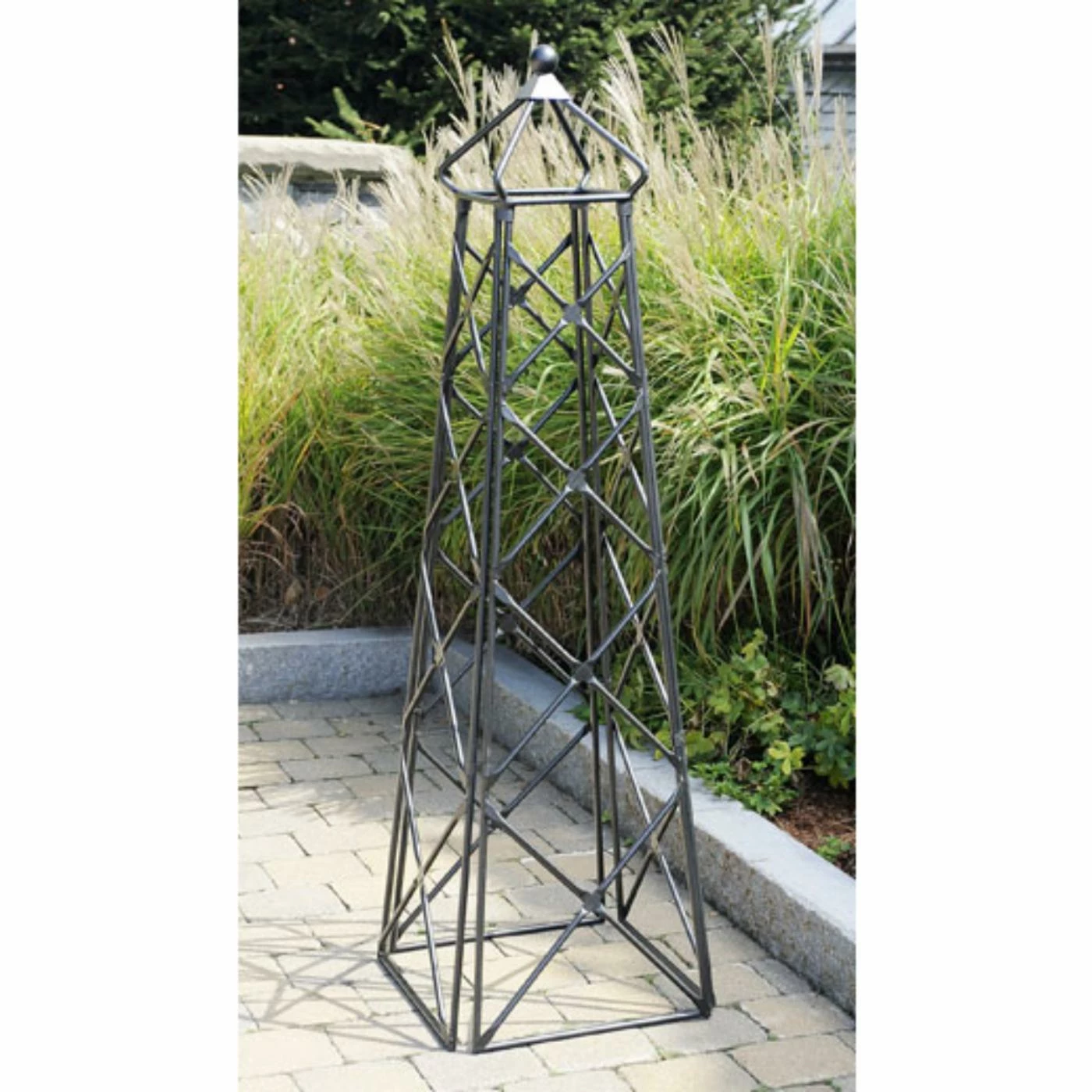 Guide your family and friends home with the Square Country Cottage Obelisk. Place one or a pair of these trellises at the entrance to your garden or yard; their lighthouse shape is artfully welcoming. The Square Country Cottage Obelisk’s diamond latticework will be its own home to your climbing plants, and at 67 inches tall, you can’t miss it. Wrought iron construction ensures wind resistance, and itsΒ black finish is resistant to rust and weather. Assembly takes only about 30 minutes, and in no time you’ll enjoy the flair this obelisk will bring to your garden.