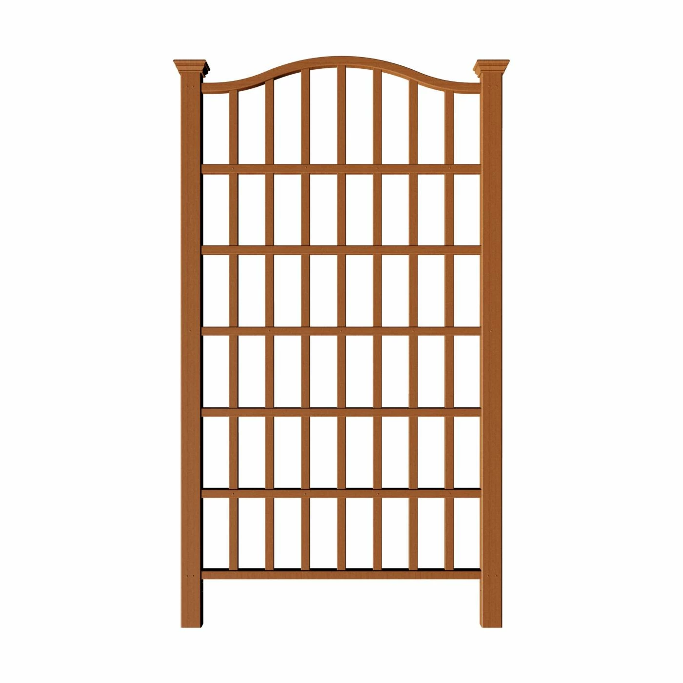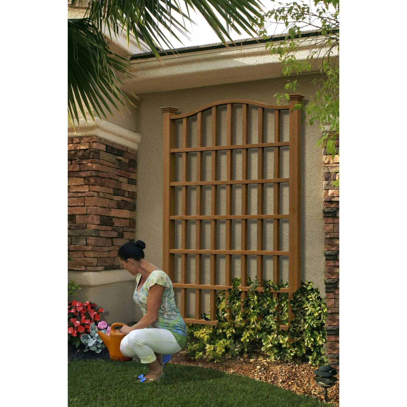 Let your favorite plants climb the Vita Concord Trellisβ lattice body. Its classic wood look comes from long-lasting vinyl construction with a beautiful cedar finish that includes sophisticated architectural details. Youβll effortlessly assemble the Concord Trellis using the included instructions. Rinses clean with a hose.