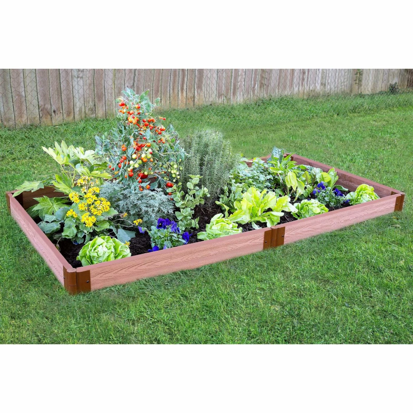 The Frame It All Tool-Free Composite Raised Garden Bed Kit – 8L x 4W x .46H ft. is a versatile kit perfect for your backyard garden. Its eco-friendly design includes insulating composite board made of recycled plastic and sustainable hardwood fibers. Pivoting brackets allow you to change the shape of your raised bed from a rectangle to hexagon – whatever works best for your space.