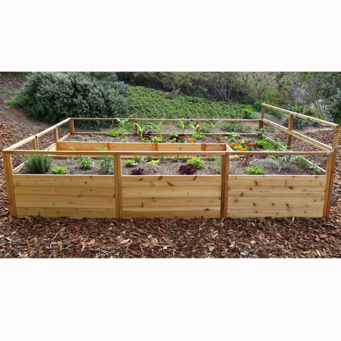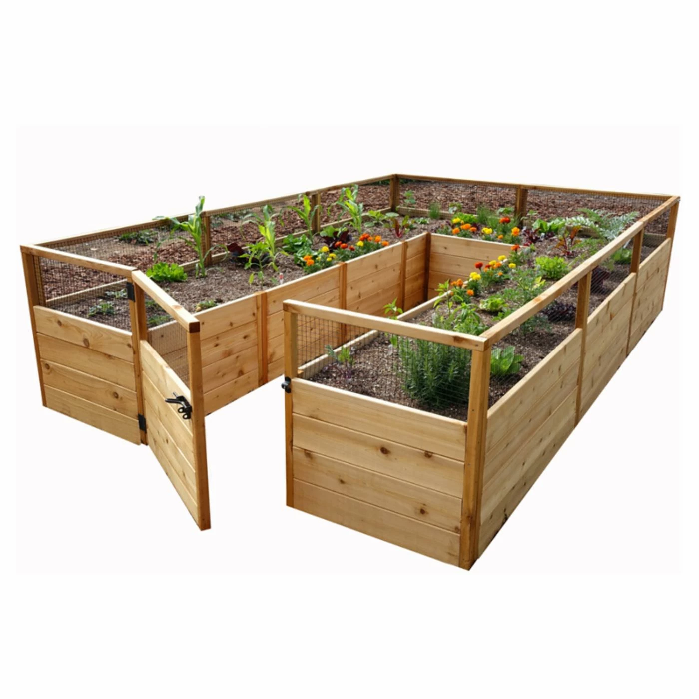Durable, spacious, and high-quality, the Outdoor Living Today Raised Cedar Garden Bed – 8 x 12 ft. is a must-have for the serious gardener. Constructeed from solid cedar, this kit comes with everything you need to easily assemble your dream gardening space. It includes paneling, 30-inch door with hinge, and mesh fencing to keep wildlife out or cultivate climbing plants. A central walkway makes for easy access to plants.