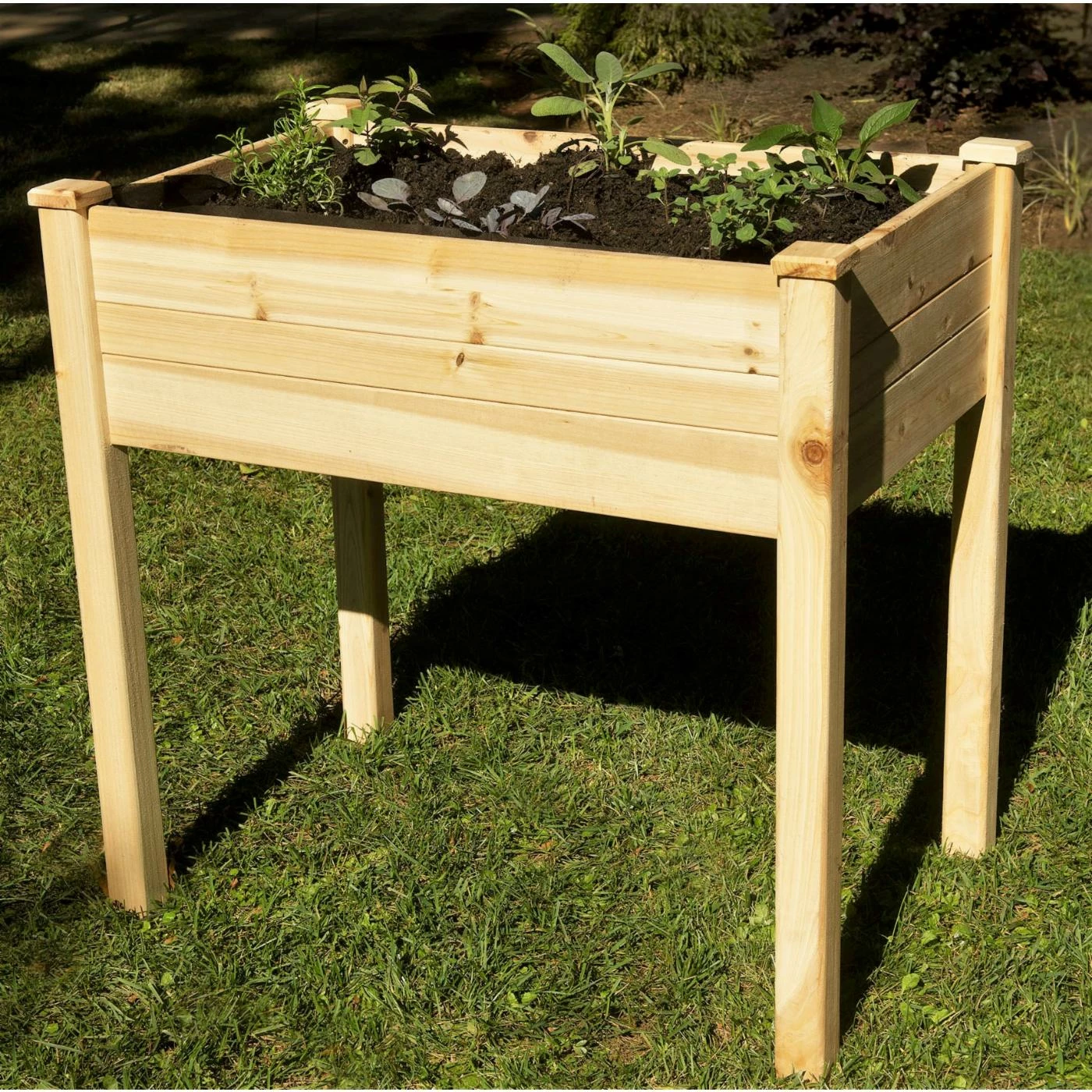 Our “no tools” Master Gardner Elevated Wooden Garden Planter Table is designed with easy tongue and groove assembly. Solid construction made out of natural hardwood. Bottom slats have been positioned for proper drainage. There is no fencing needed as it keeps pets, rabbits and pests out. The decorative wood design contain natural wood knots in which are round, dark spots in the wood. Includes a drainage hole to allow excess water to drain out, keeping soil fresh and preventing plants from overwatering.
