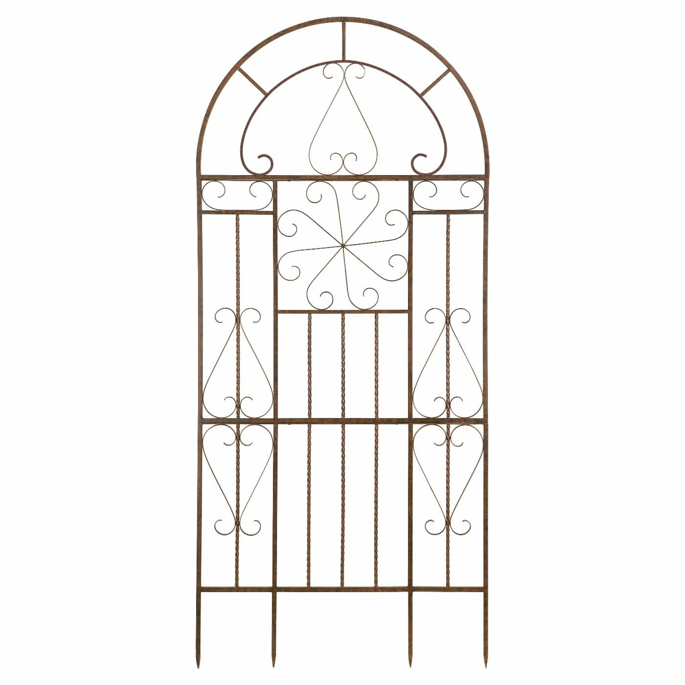 Beautiful and elegance, the classic Deer Park Ironworks Large Kaleidoscope Trellis is a gorgeous addition to your patio or garden. Its detailed craftsmanship and natural patina appearance adds a sophisticated style to your backyard that complements any decor. Perfect for climbing plants and flowers, you can grow your favorite vegetables or add a touch of color by planting vibrant flowers to decorate the trellis. Crafted from durable, heavy gauge metal with a baked-on, powder-coated finish to protect it from the elements, this trellis also comes with its own ground spikes.