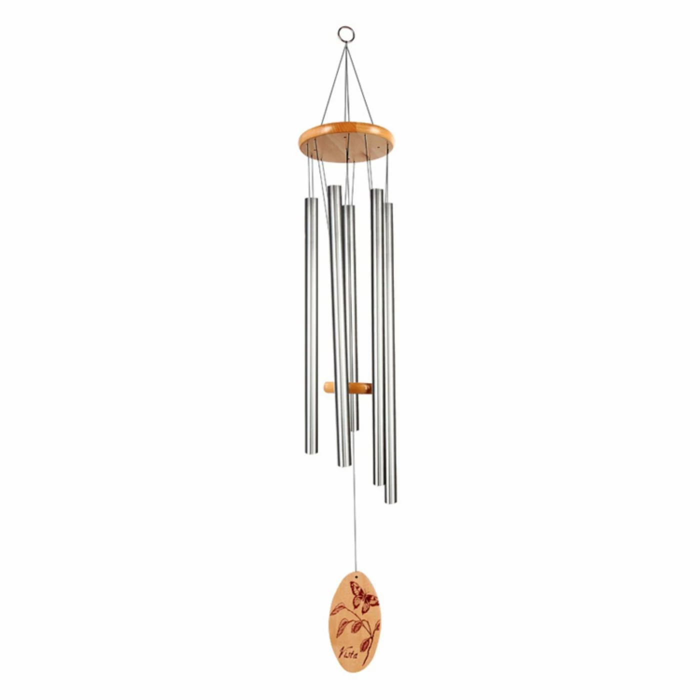With its rich musical tones and handsome silver rods, the Sunset Vista 36 inch Silver Wind Chime is a welcome addition to any outdoor setting. This large, 36-inch long wind chime includes 5 aluminum rods that create beautiful music. It features a hardwood top, striker, and butterfly-decorated wind catcher that are finished to add style and resist the elements.