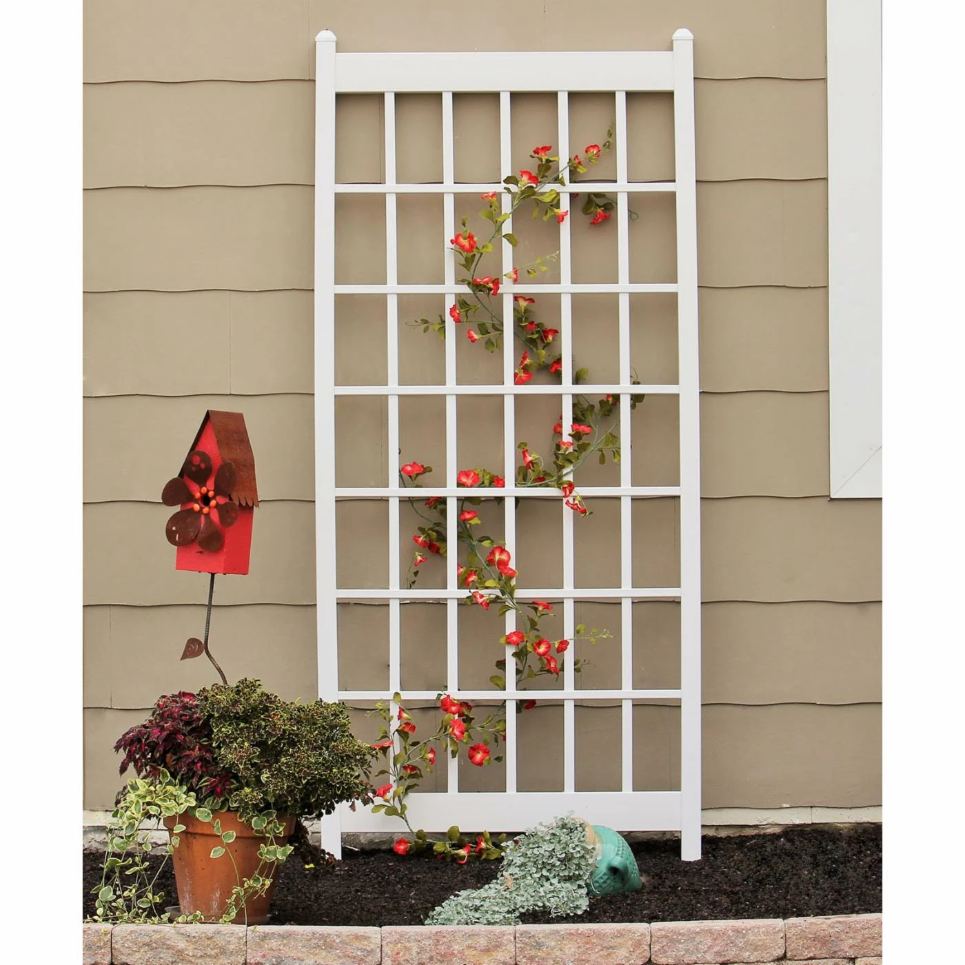 Bring new life to any outdoor wall with this Dura-Trel Lancaster Trellis. This trellis is made of maintenance-free vinyl and boasts a crisp white finish that works with any landscape design. It comes complete with a wall mounting kit and includes a 20-year manufacturer’s warranty. The trellis stands just over 7 feet tall and boasts a classic grid design that encourages your climbing vines and flowers to flourish.