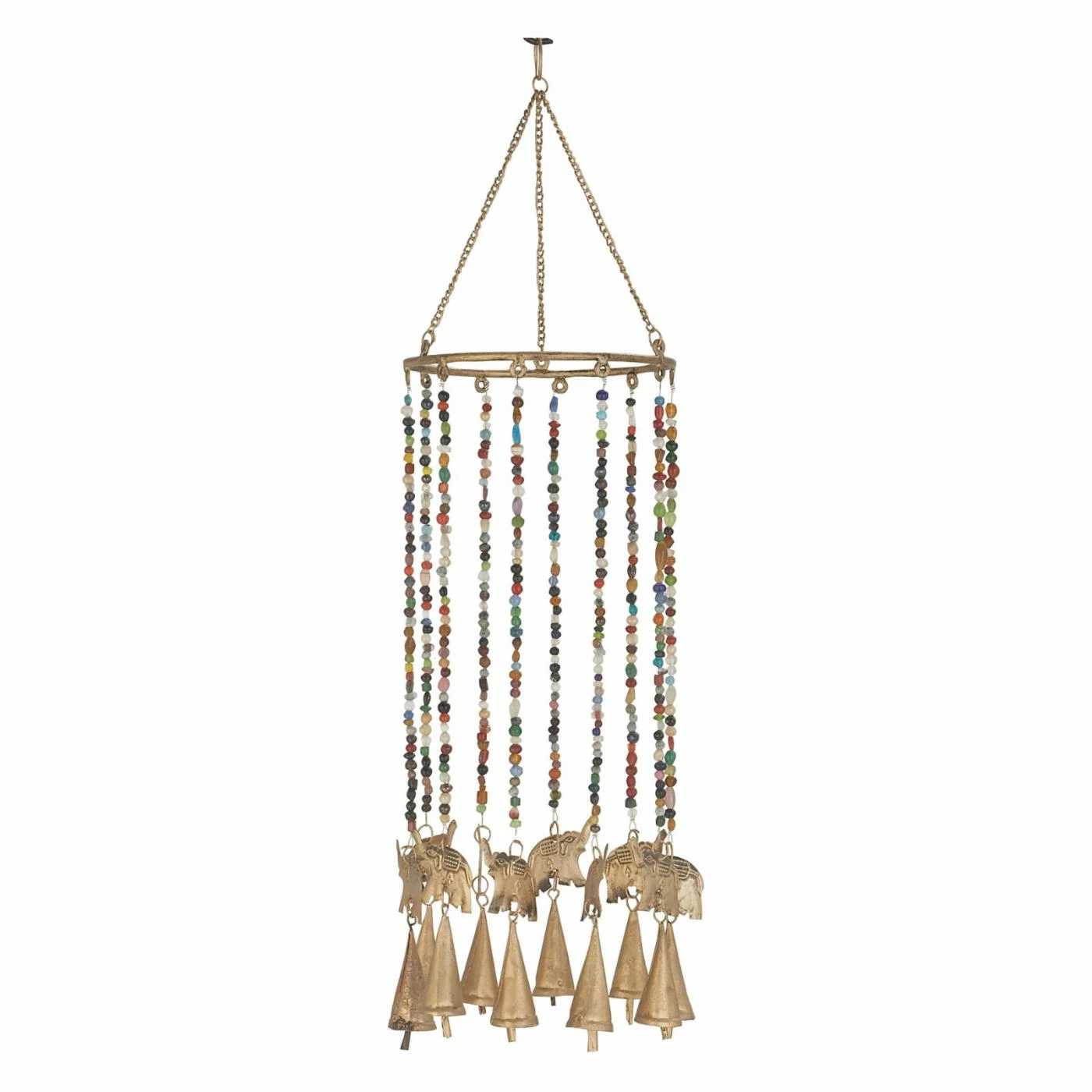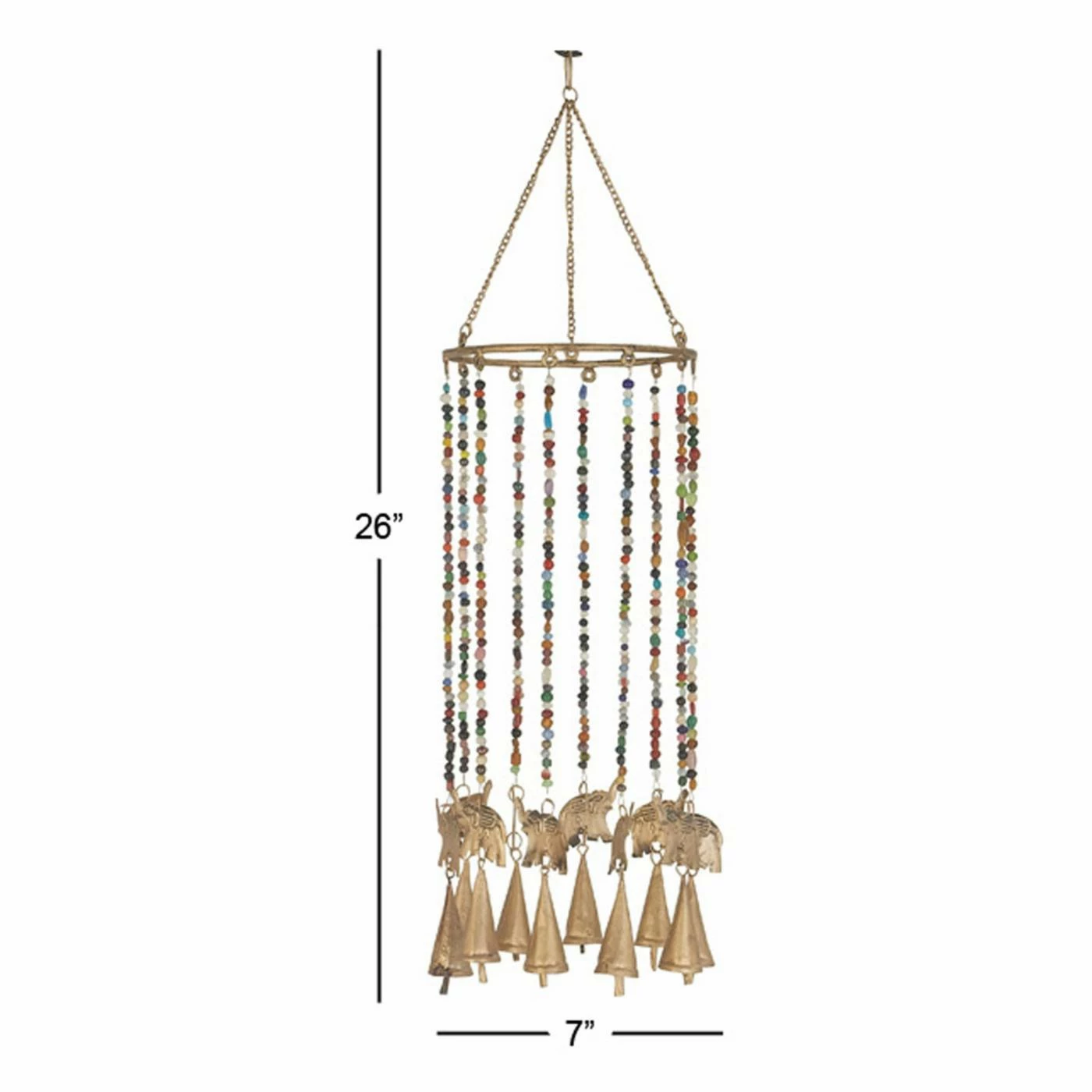 The DecMode 26 in. Elephant Wind Chime brings brilliant style to your abode with a myriad of small, colorful glass bead strands. Elephant shapes and chiming bells made of metal are featured in warm gold to give your porch or garden a dash of rich, inviting appeal.