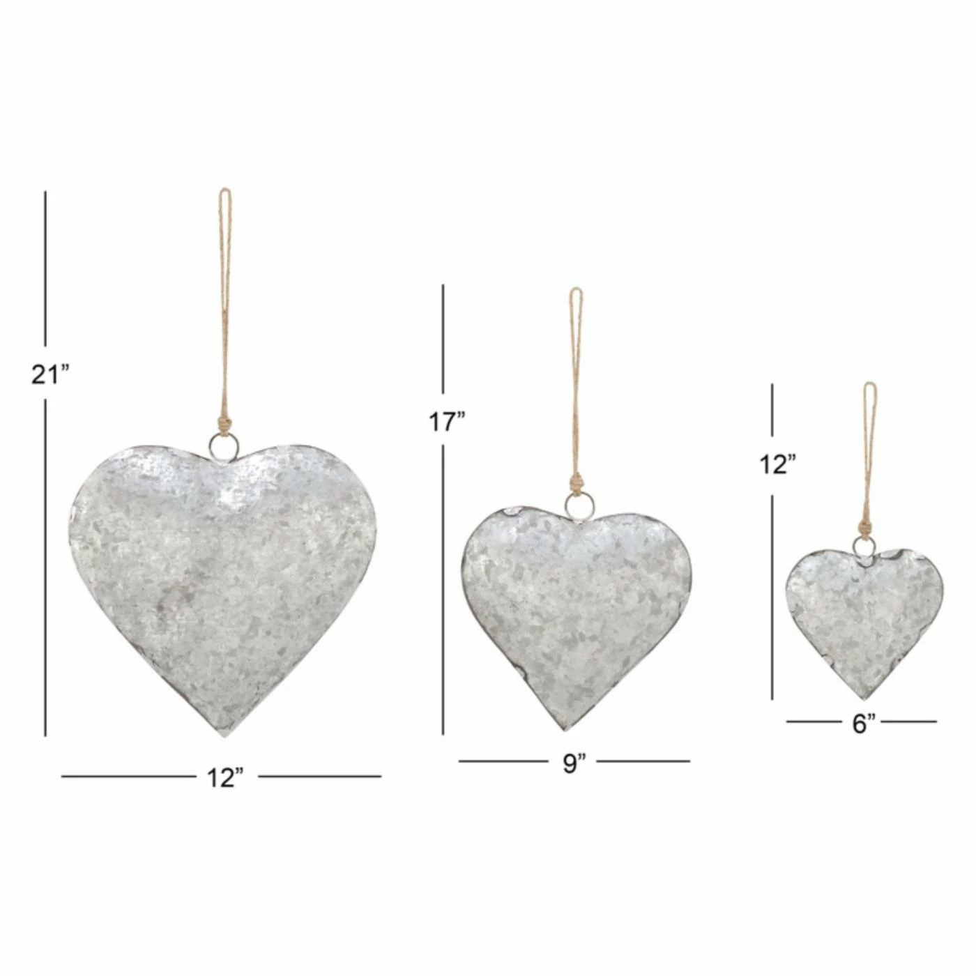 Add a warm-hearted nuance to your dΓ©cor with the DecMode Hanging Galvanized Metal Hearts – Set of 3. Constructed from iron, these heart ornaments feature a rustic galvanized finish. Each heart will arrive ready to hang with its own fiber rope hanger.